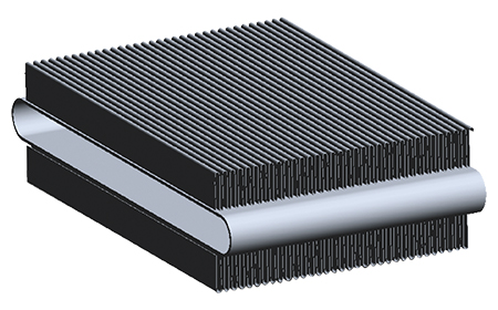 單排管由單面覆鋁板卷制的大扁管和鋁制蛇形翅片進(jìn)行焊接,兩者結(jié)合緊密,根部有較大的焊腳,使得單排管凝汽器有優(yōu)異的換熱性能,其具有如下特點(diǎn):